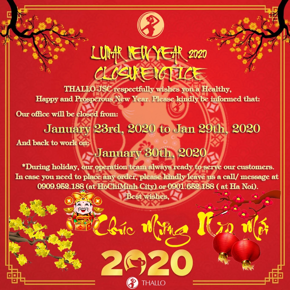 LUNAR NEW YEAR 2020 CLOSURE NOTICE: